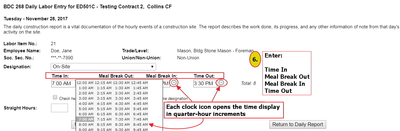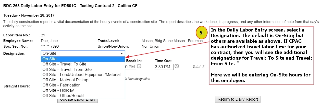 Once the Update Labor Entry button has been pressed, it will go into this day's daily reporting.