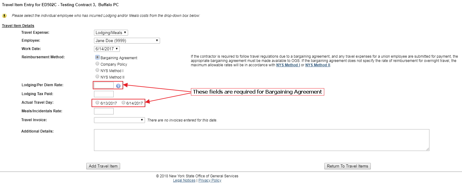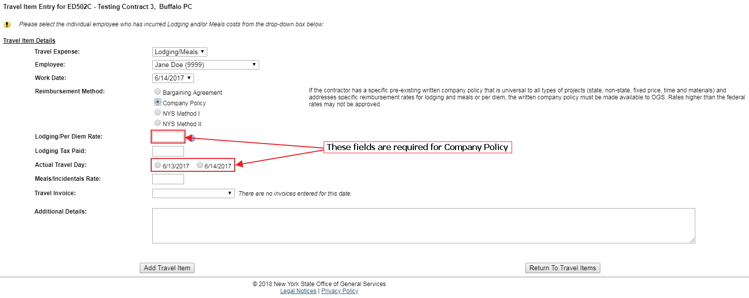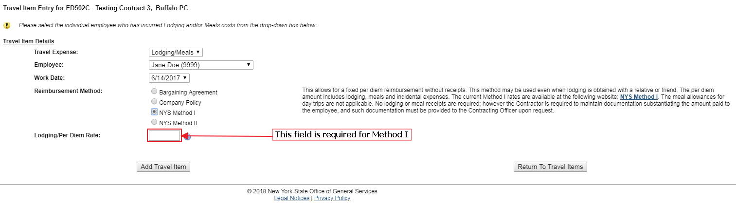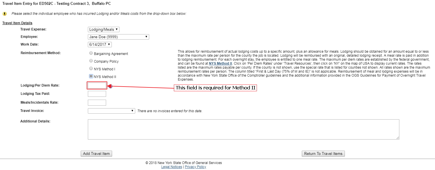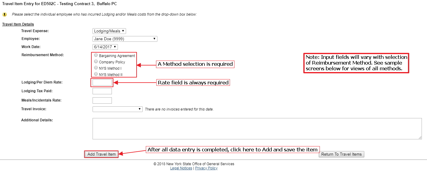 Item Expense Detail Screens by Reimbursement Methods